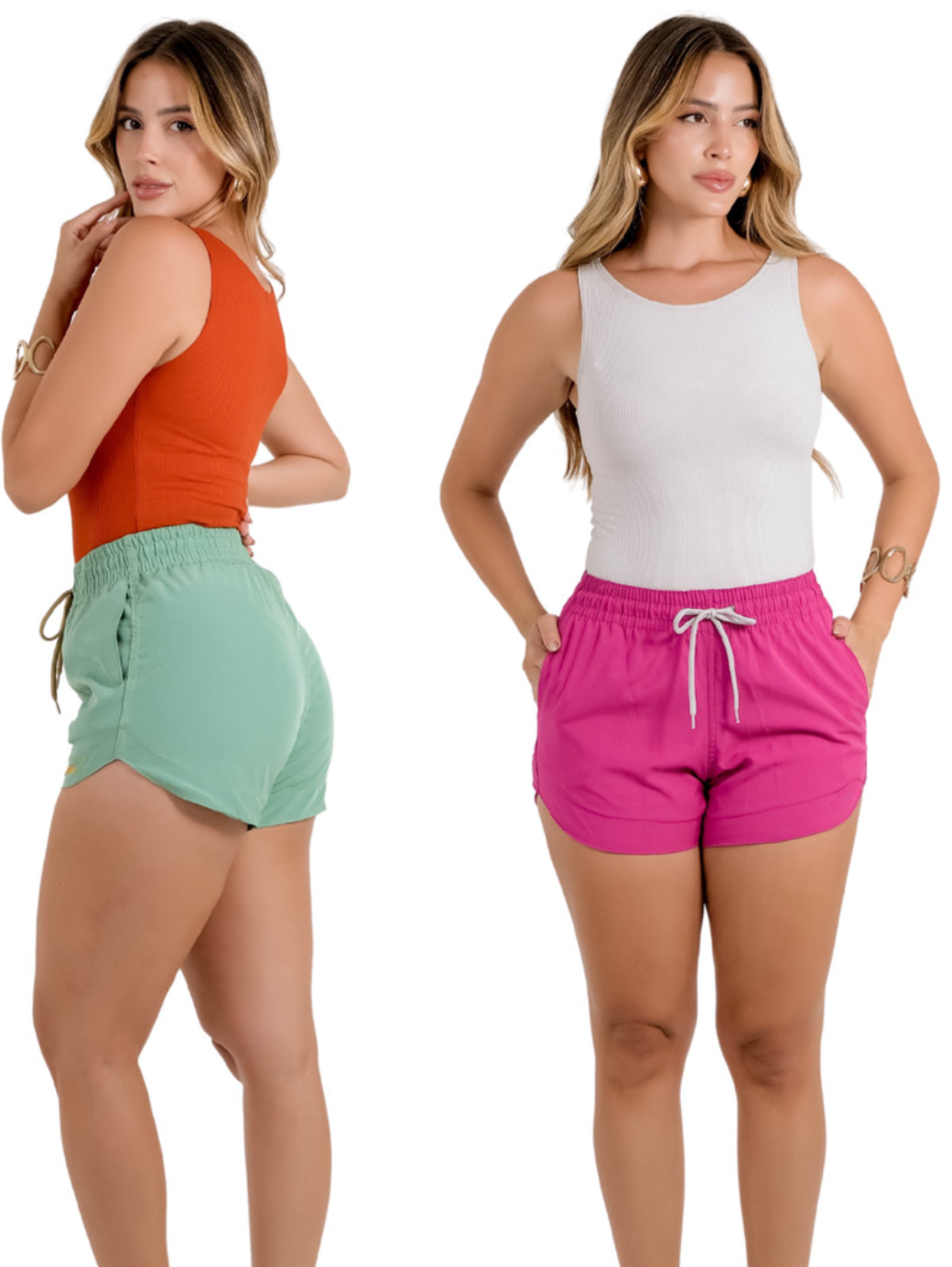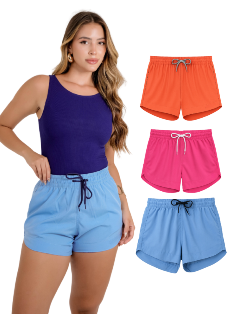 Short Feminino Curto Tactel Com Elastano Saída De Praia Piscina Academia Liso Moda Blogueira